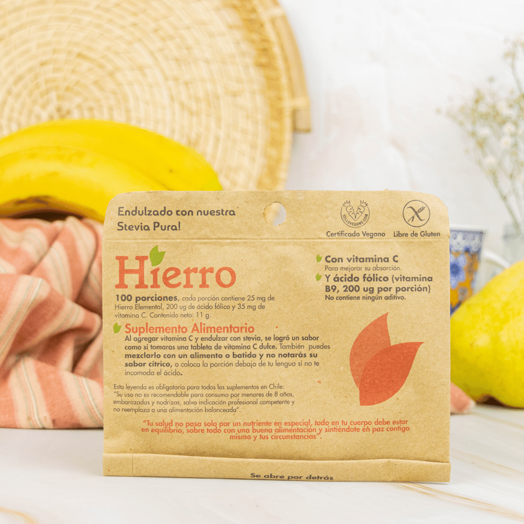 INGREDIENTES: HIERRO (FUMARATO FERROSO), VITAMINA C (ÁCIDO ASCÓRBICO), ÁCIDO FÓLICO (VITAMINA B9), STEVIA PURA.