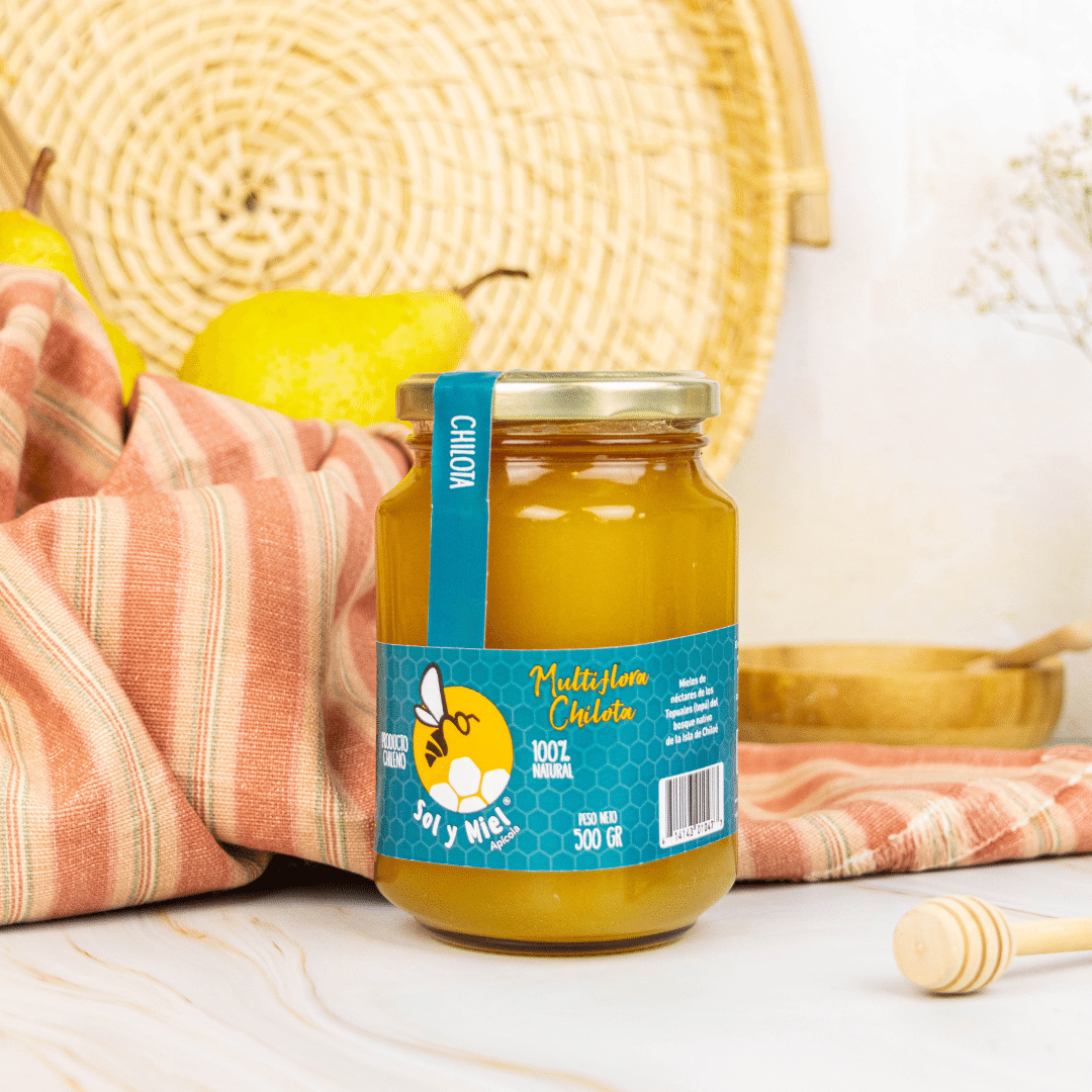 MIEL MULTIFLORAL CHILOTA, CRUDA Y SIN FILTRAR 100% OBTENIDA DE APIARIOS DEL BOSQUE NATIVODE LA ISLA DE CHILOÉ, ESPECÍFICAMENTE DE LOS TEPUALES (TEPÚ), DE ESTOS ARBUSTOS SE OBTIENEN LOS NÉCTARES QUE LAS ABEJAS RECOLECTAN PARA CREAR ESTA DELICIOSA MIEL LIBRE DE PESTICIDAS Y/ O AGROQUÍMICOS.