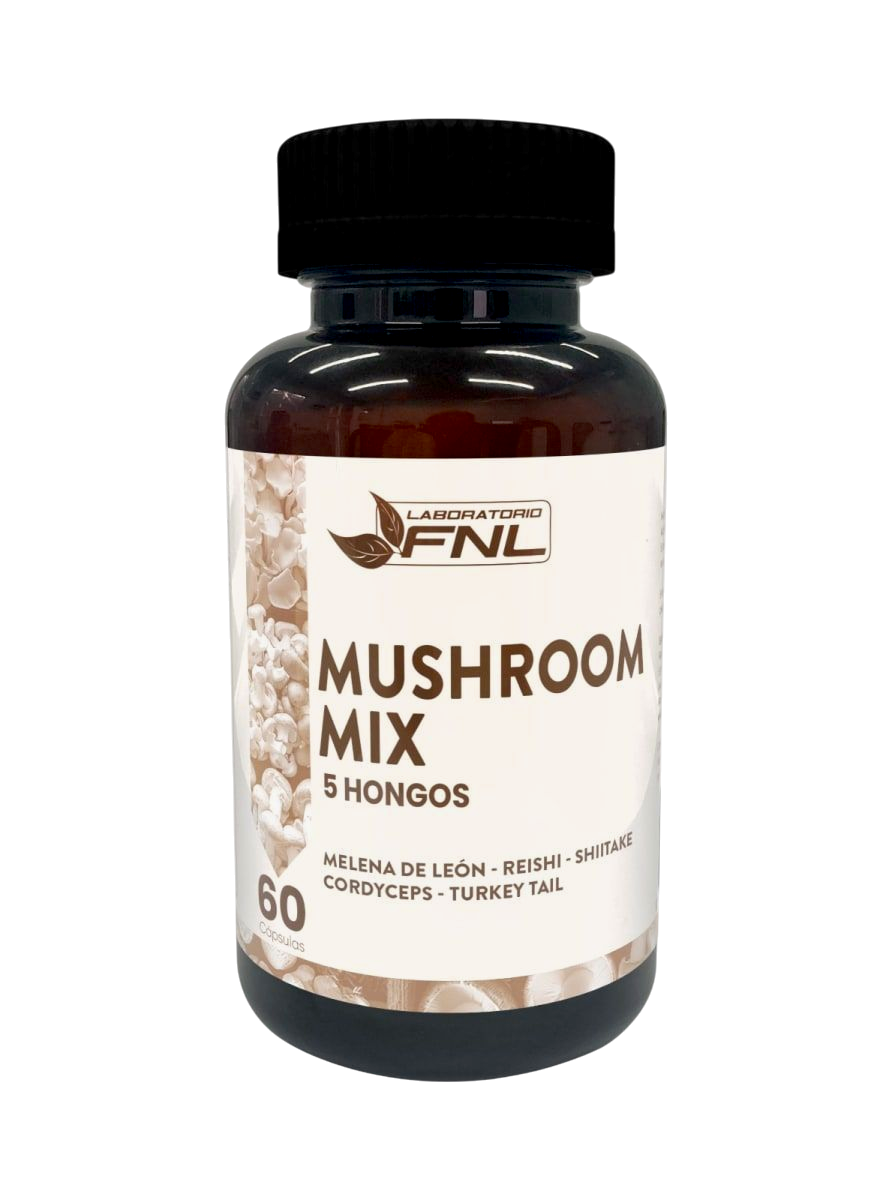 - Mix 5 Hongos es un modulador biológico diseñado para apoyar la autoregulación del cuerpo, potenciando la capacidad natural del organismo para adaptarse y responder a los desafíos del día a día.